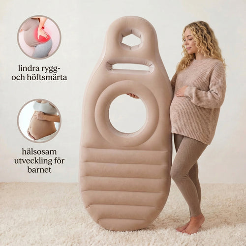GraviPro är en uppblåsbar graviditetsmadrass med en smart, placerad öppning som gör det möjligt att vila i en mer avlastande position.